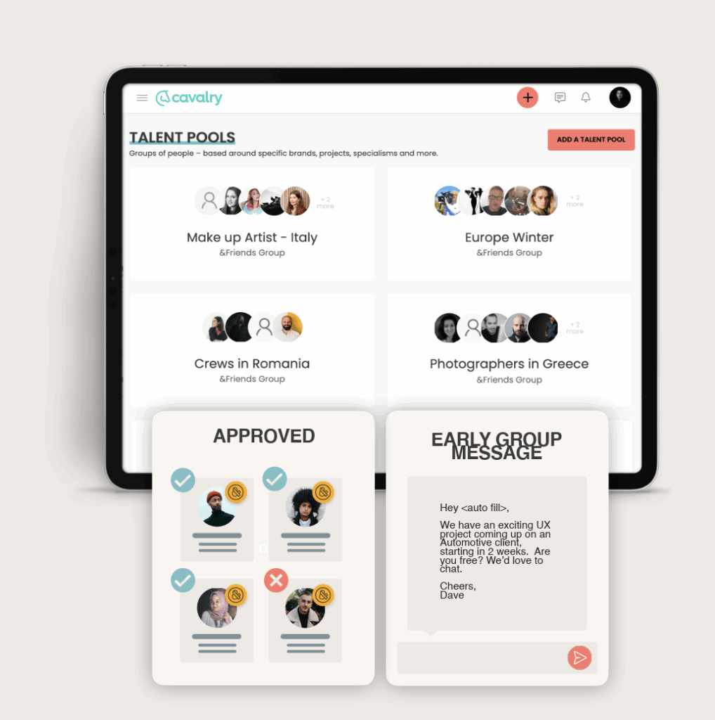 Create a digital bench of your go-to freelancers. Cavalry helps you organise your existing blackbook of freelance, contract, and permanent talent, so your team can hire faster and smarter — without endless spreadsheets or back-and-forth emails.