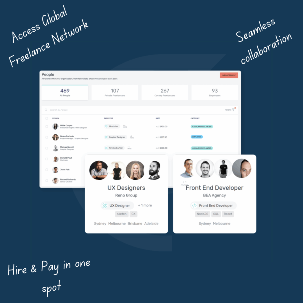 Cavalry’s freelancer management platform creates an internal marketplace that unlocks your in-house experts like never before. Boost team utilisation and expertise, protect your intellectual property, and strengthen trusted partnerships — a true win-win.